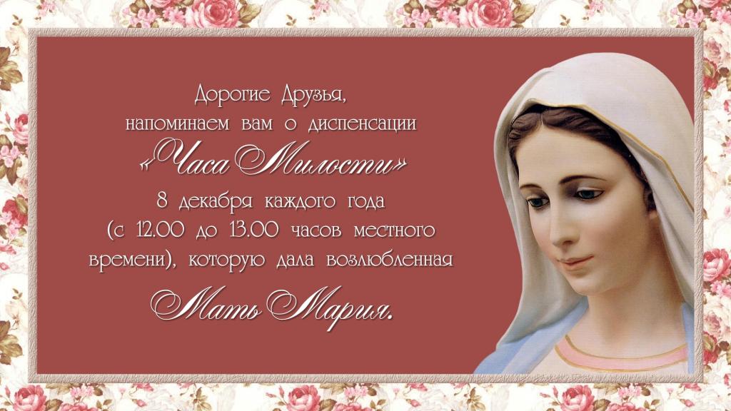 Час Милости Матери Марии происходит ежегодно 8 декабря с 12 до 13 часов местного времени.