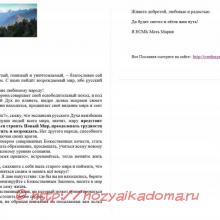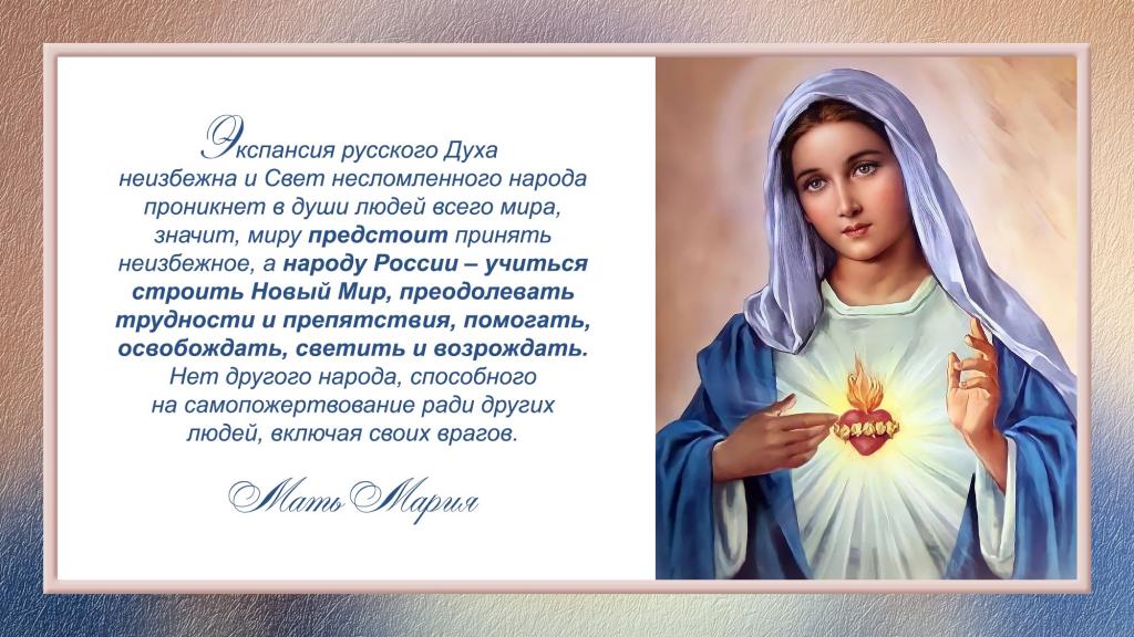 Россияне, ваш долг сегодня – стать примером совершенных Божественных качеств, стать истинными строителями Нового Мира, повышать образование, просвещать, учиться всему новому и стремиться к высокому духовному пути и высокому уровню сознания.