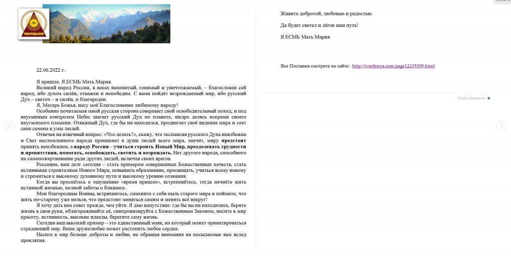 Послание приняла Стелла Риф 22 июня 2022 года: