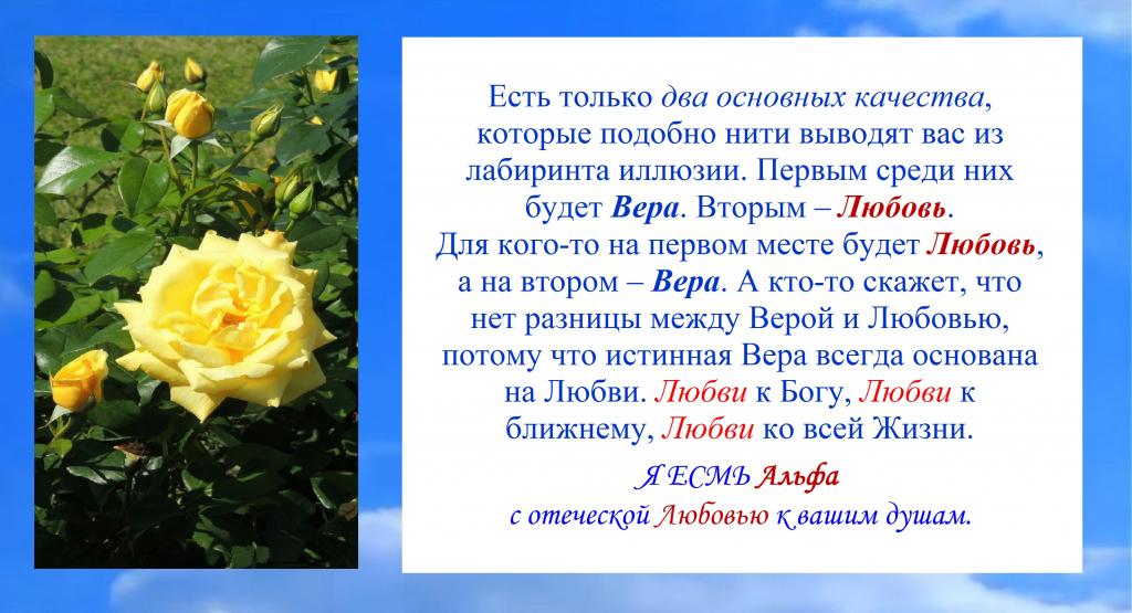 Есть только два основных качества, которые подобно нити выводят вас из лабиринта иллюзии. Первым среди них будет Вера. Вторым – Любовь.