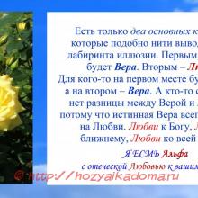 Для кого-то на первом месте будет Любовь, а на втором – Вера. А кто-то скажет, что нет разницы между Верой и Любовью, потому что истинная Вера всегда основана на Любви. Любви к Богу, Любви к ближнему, Любви ко всей Жизни.