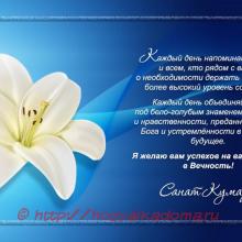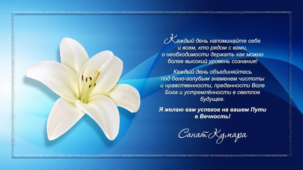 Каждый день объединяйтесь под бело-голубым знаменем чистоты и нравственности, преданности Воле Бога и устремлённости в светлое будущее.