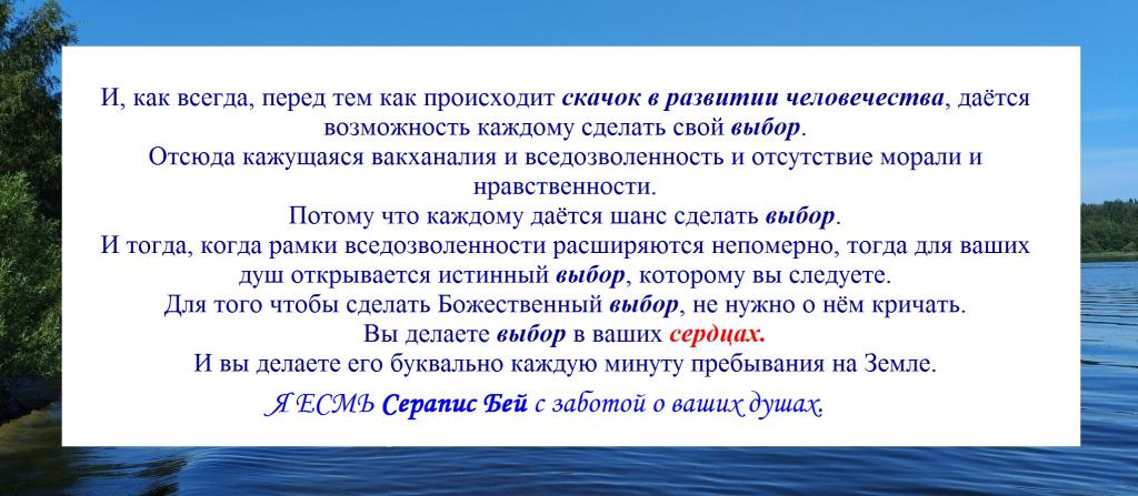 И тогда, когда рамки вседозволенности расширяются непомерно, тогда для ваших душ открывается истинный выбор, которому вы следуете.