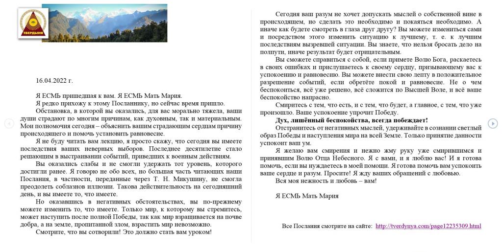 Послание приняла Стелла Риф 16 апреля 2022 года: