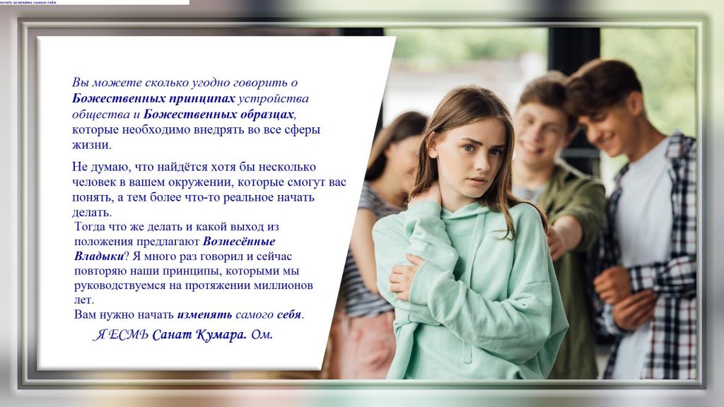 Тогда что же делать и какой выход из положения предлагают Вознесённые Владыки? Я много раз говорил и сейчас повторяю наши принципы, которыми мы руководствуемся на протяжении миллионов лет.