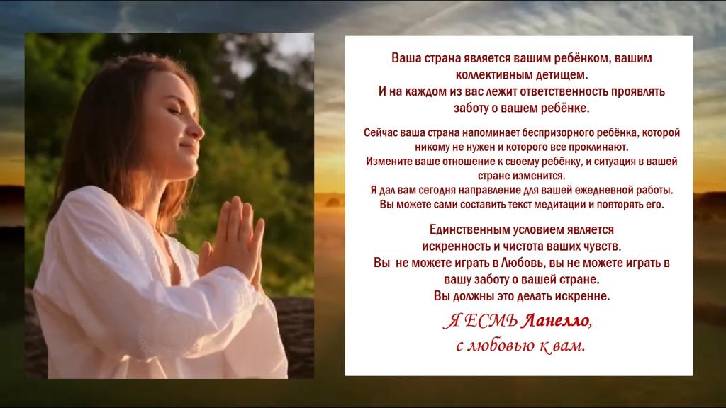 Искренне посылать вашу Любовь в каждую негармоничную ситуацию, которая возникает в вашей стране.