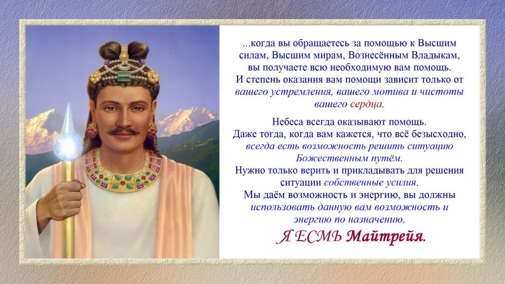 Потому что тогда, когда вы обращаетесь за помощью к Высшим силам, Высшим мирам, Вознесённым Владыкам, вы получаете всю необходимую вам помощь.