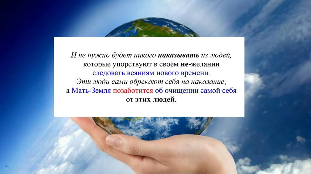 Эти люди сами обрекают себя на наказание, а Мать-Земля позаботится об очищении самой себя от этих людей.