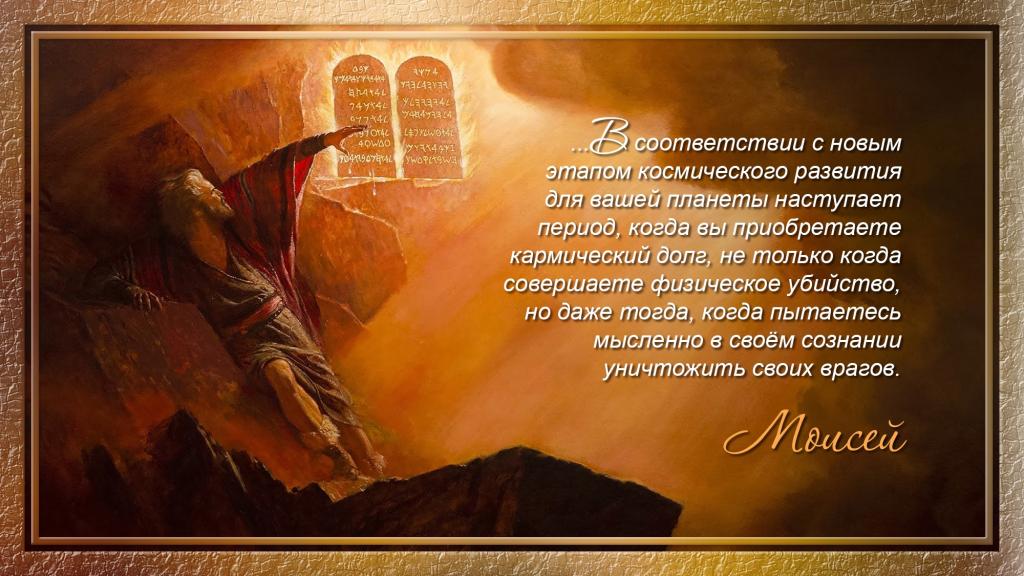 И сейчас я должен вам сказать, что в соответствии с новым этапом космического развития для вашей планеты наступает период, когда вы приобретаете кармический долг, не только когда совершаете физическое убийство, но даже тогда, когда пытаетесь мысленно в своём сознании уничтожить своих врагов.