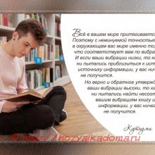 Всё в вашем мире притягивается по вибрациям. Поэтому с неминуемой точностью вы найдёте в окружающем вас мире именно то, что соответствует вам по вибрациям. И если ваши вибрации низки, то как бы вы ни пытались приблизиться к истинному источнику информации, у вас ничего не получится.