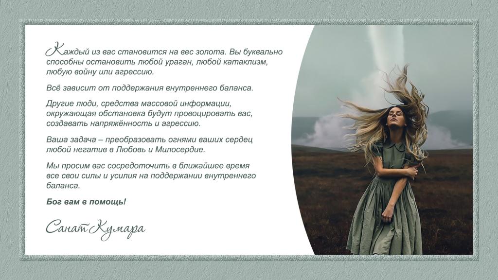 Мы просим вас сосредоточить в ближайшее время все свои силы и усилия на поддержании внутреннего БАЛАНСА.