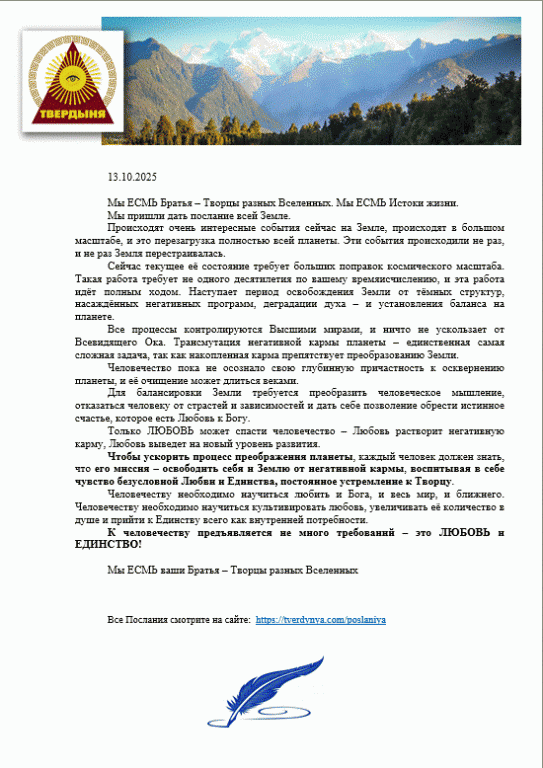 Послание приняла Стелла Риф 13 октября 2025 года: