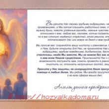 Просите у Нас защиты, не игнорируйте Наше присутствие, просите помощи в любых делах. Мы рядом, Мы всегда присутствуем рядом с вами и во всех сферах ваших дел. Мы присутствуем тонко и невидимо, но многие могут чувствовать Наше присутствие и наблюдать некоторые изменения обстоятельств жизни под Нашим влиянием.