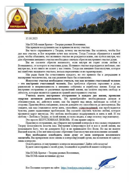 Послание приняла Стелла Риф 15 октября 2025 года: