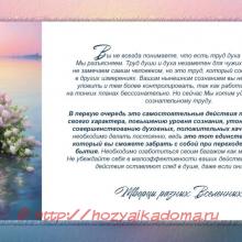 Трудитесь для души! Трудитесь душой! Когда вы воспитываете свой характер, улучшаете духовные качества, ваша душа трудится вместе с вашим сознанием, вы прорабатываете какое-либо качество, и его новый уровень занимает свою ячейку в матрице души.