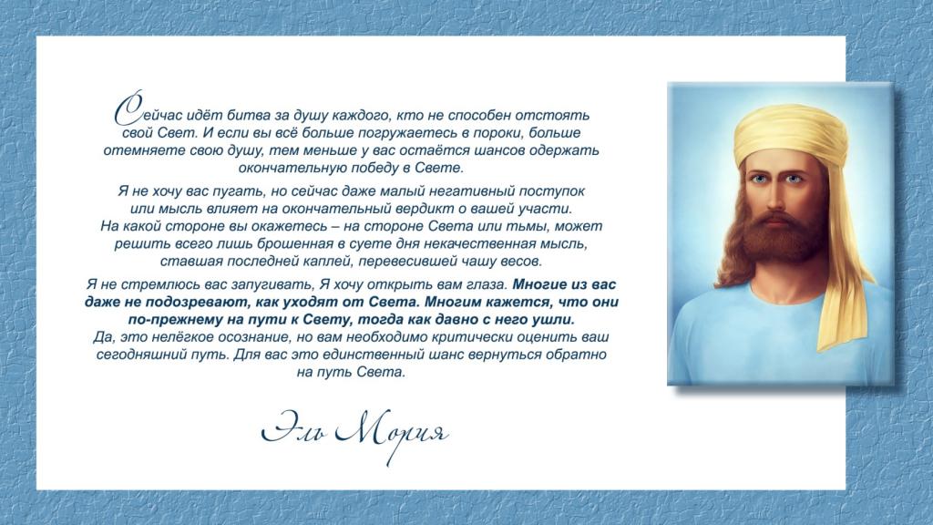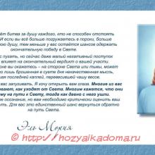 Сейчас идёт битва за душу каждого, кто не способен отстоять свой Свет. И если вы всё больше погружаетесь в пороки, больше отемняете свою душу, тем меньше у вас остаётся шансов одержать окончательную победу в Свете.