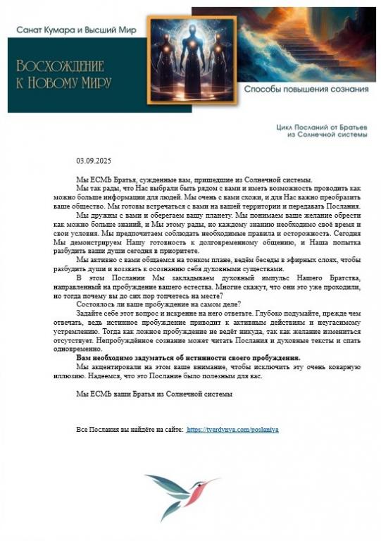 Послание приняла Стелла Риф 3 сентября 2025 года: