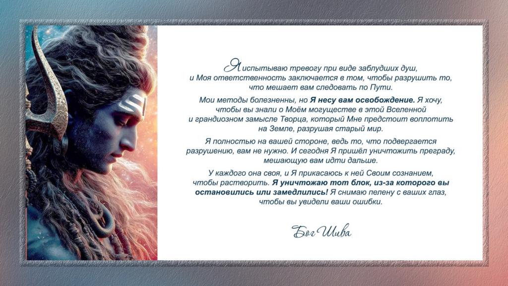 Я хочу, чтобы вы знали о Моём могуществе в этой Вселенной и грандиозном замысле Творца, который Мне предстоит воплотить на Земле, разрушая старый мир.