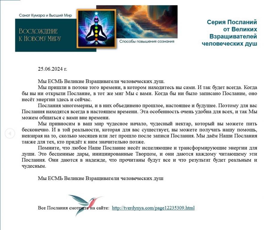 Послание приняла Стелла Риф 25 июня 2024 года: