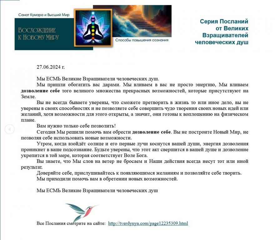 Послание приняла Стелла Риф 27 июня 2024 года:
