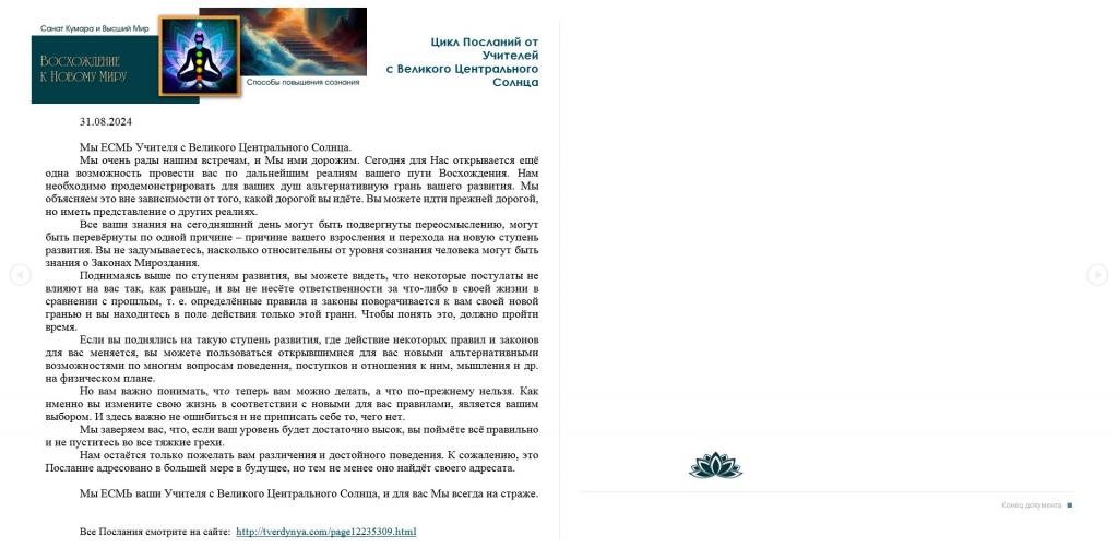 Послание приняла Стелла Риф 31 августа 2024 года: