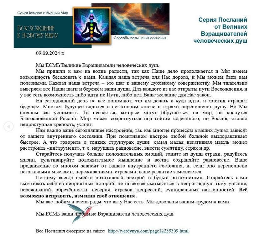 Послание приняла Стелла Риф 9 сентября 2024 года: