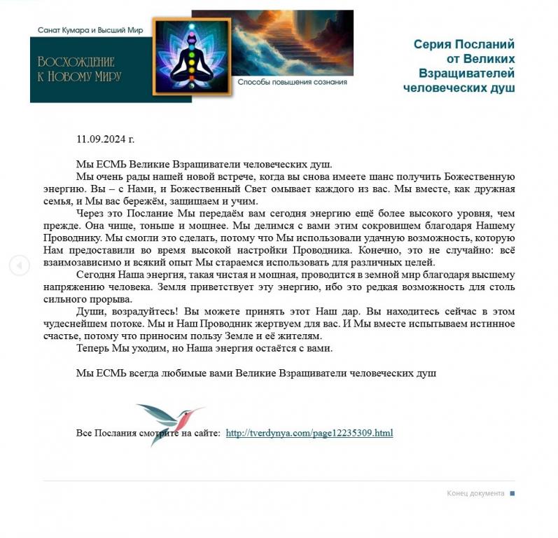Послание приняла Стелла Риф 11 сентября 2024 года: