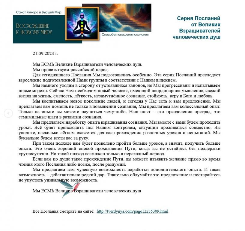 Послание приняла Стелла Риф 21 сентября 2024 года: