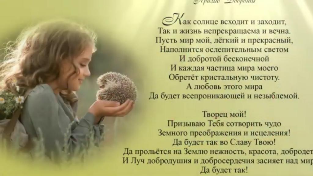 Читая текст Призыва Доброты, мы привлекаем в свою жизнь различные проявления доброты, которой нам сейчас так не хватает.