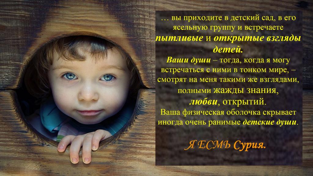 Ваши души – тогда, когда я могу встречаться с ними в тонком мире, – смотрят на меня такими же взглядами, полными жажды знания, любви, открытий.