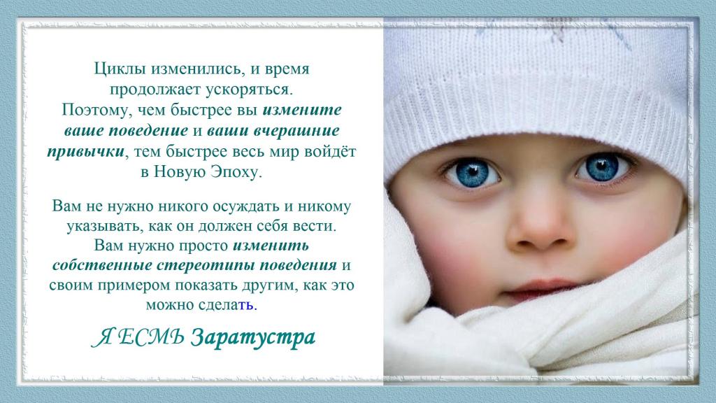 Поэтому, чем быстрее вы измените ваше поведение и ваши вчерашние привычки, тем быстрее весь мир войдёт в Новую Эпоху.