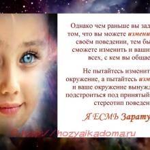 Попробуйте, и вы почувствуете, что ваше самочувствие улучшится, потому что ваше поведение будет соответствовать требованиям времени и новым вибрациям, пришедшим на Землю.