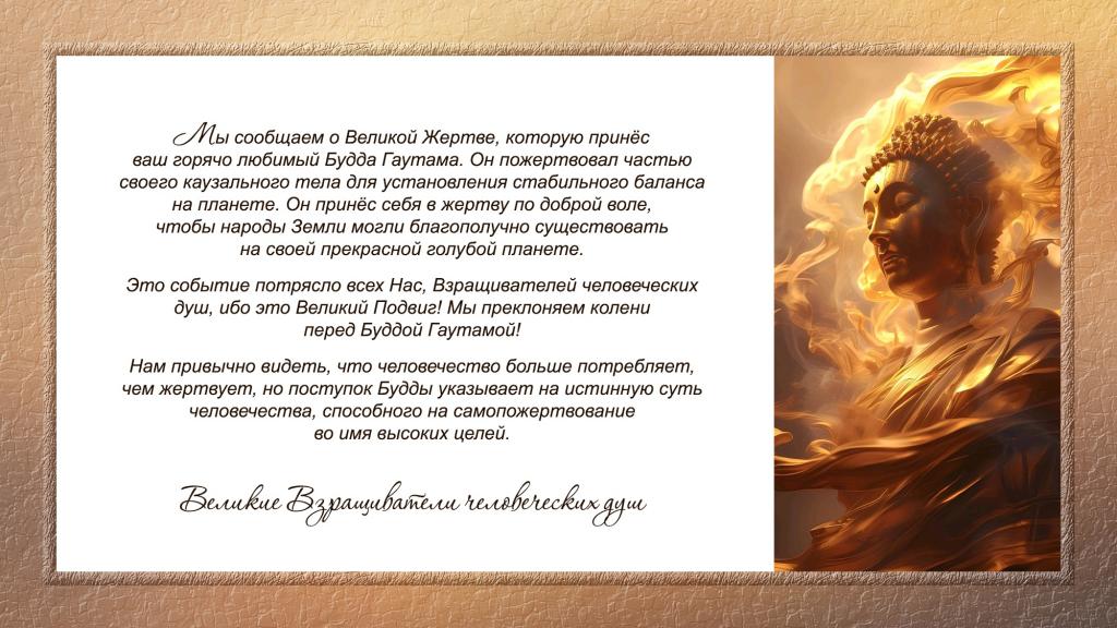 И каждое Существо, стоящее на более высокой ступени развития сознания, готово пожертвовать собой из любви и сострадания к тем живым существам, которые стоят на меньших ступенях своего развития.
