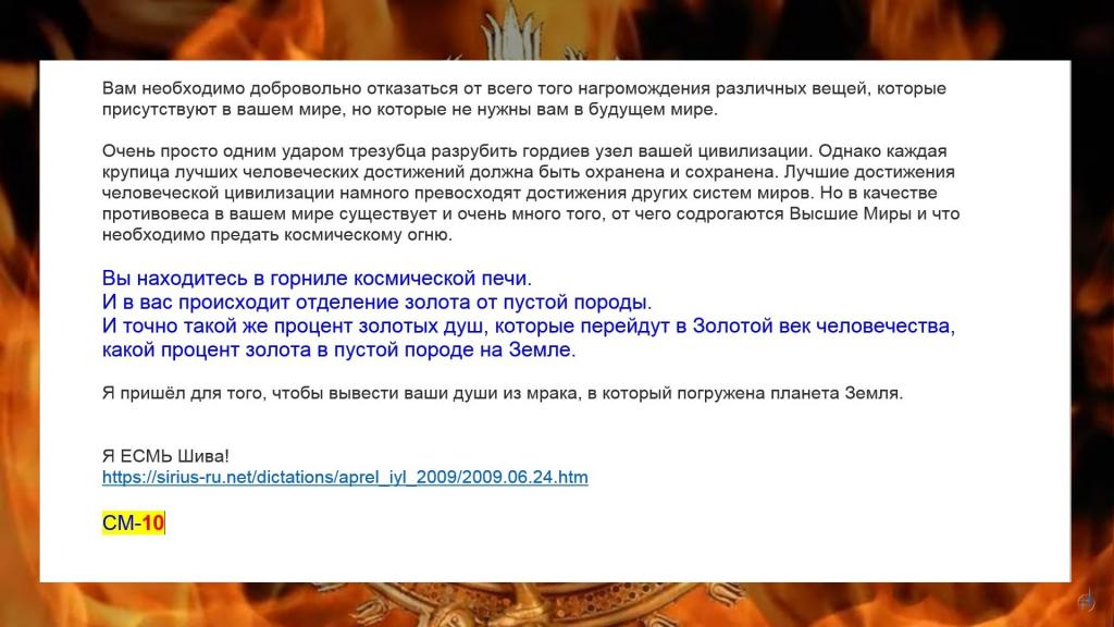 Лучшие достижения человеческой цивилизации намного превосходят достижения других систем миров. Но в качестве противовеса в вашем мире существует и очень много того, от чего содрогаются Высшие Миры и что необходимо предать космическому огню.