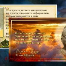 Вы просто читаете эти диктовки, вы просто усваиваете информацию, которая содержится в этих диктовках, и то влияние, которое вы будете оказывать на происходящие на Земле события, будет подобно рессорам.