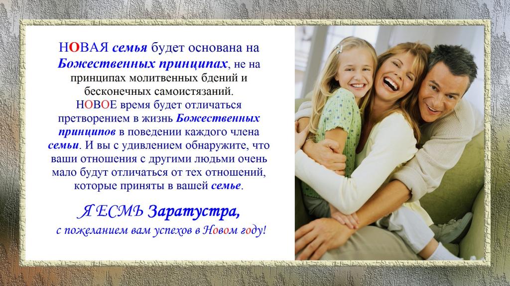 НОВОЕ время будет отличаться претворением в жизнь Божественных принципов в поведении каждого члена СЕМЬИ.
