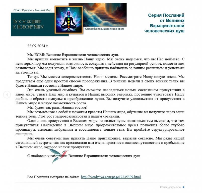 Послание приняла Стелла Риф 22 сентября 2024 года: