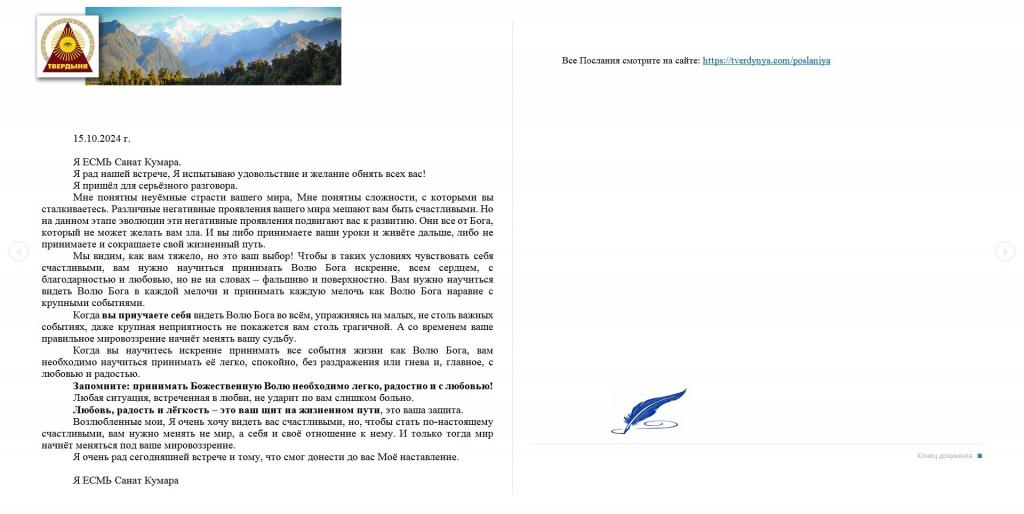 Послание приняла Стелла Риф 15 октября 2024 года: