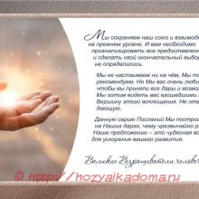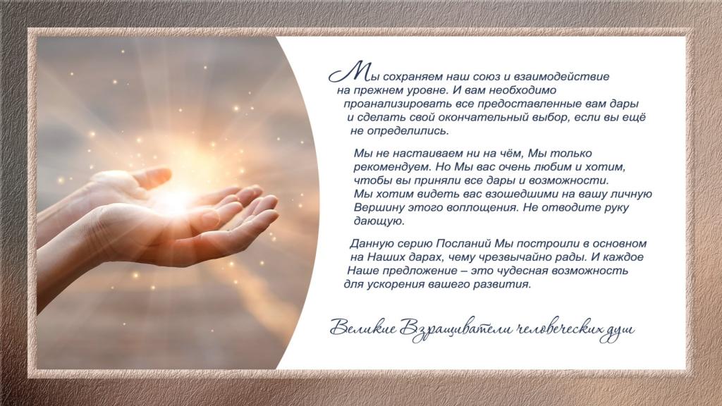Данную серию Посланий Мы построили в основном на Наших дарах, чему чрезвычайно рады. И каждое Наше предложение – это чудесная возможность для ускорения вашего развития.