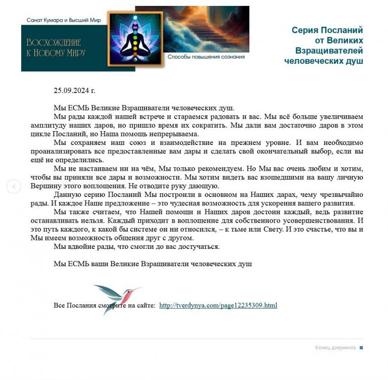 Послание приняла Стелла Риф 25 сентября 2024 года: