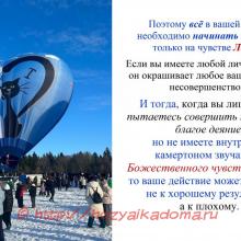 Поэтому всё в вашей жизни необходимо начинать и делать только на чувстве Любви.