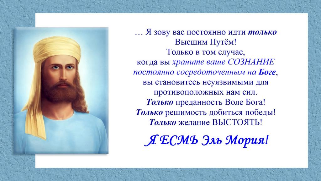 … Я зову вас постоянно идти только Высшим Путём!