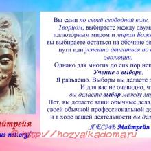 Однако для многих до сих пор непонятно это Учение о выборе. Я разъясню. Выборы вы делаете постоянно. И для вас не очевидно, что вы делаете выбор между мирами. Нет, вы делаете ваши обычные дела, занимаетесь своей обычной профессиональной деятельностью, и в ходе вашей деятельности вы делаете выбор.