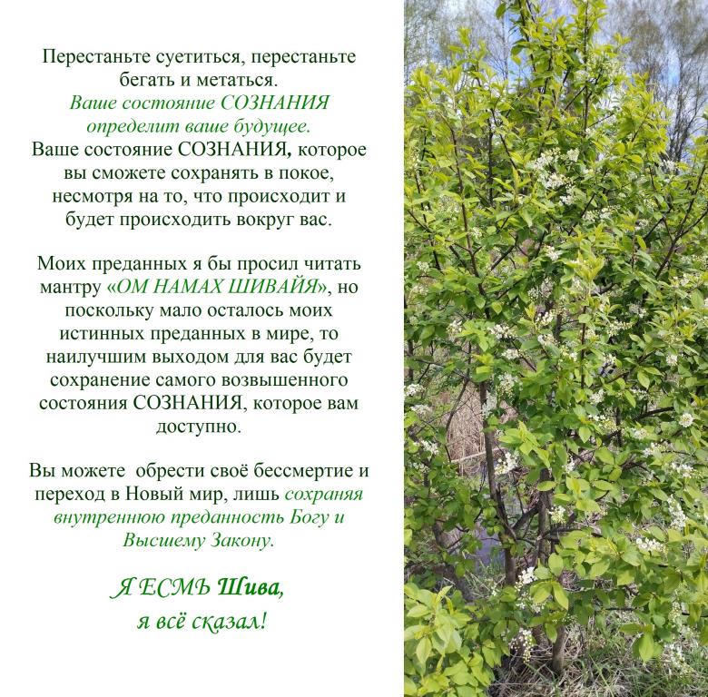 Моих преданных я бы просил читать мантру «ОМ НАМАХ ШИВАЙЯ», но поскольку мало осталось моих истинных преданных в мире, то наилучшим выходом для вас будет сохранение самого возвышенного состояния СОЗНАНИЯ, которое вам доступно.