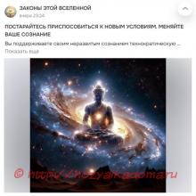 Есть много цивилизаций, кроме вашей планеты, во Вселенной, которые встали на путь технократического развития. И для всех этих цивилизаций свойственен отрыв от вселенской информационной базы.