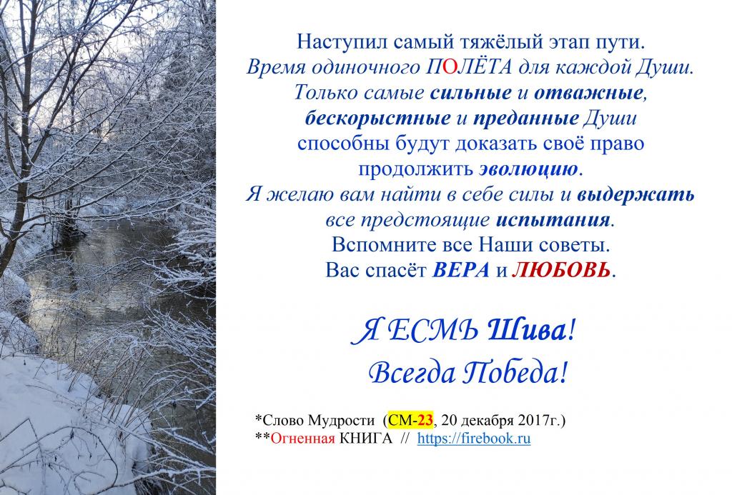 *Слово Мудрости (СМ-23, 20 декабря 2017г.)