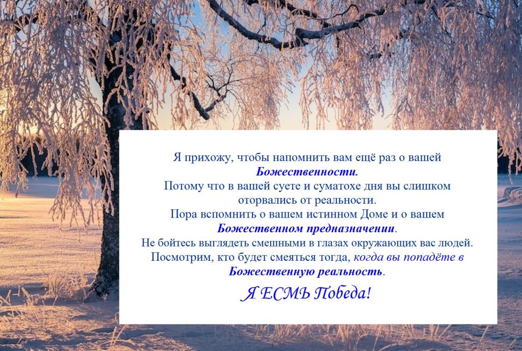 Однако я не теряю надежды на то, что найдутся те человеческие индивидуумы, для которых каждое моё слово сегодняшнего Послания будет нести столь важную энергетическую и информационную составляющую, что ваша жизнь изменится так быстро, как вы даже не могли предполагать в ваших самых смелых мечтаниях.