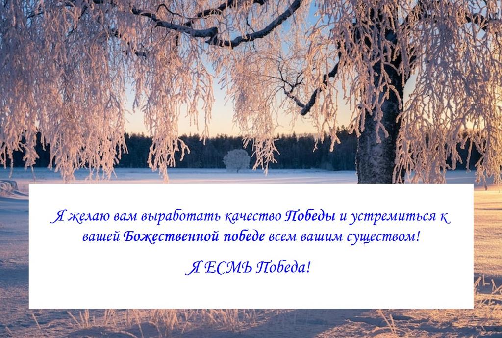Я желаю вам выработать качество Победы и устремиться к вашей Божественной победе всем вашим существом!