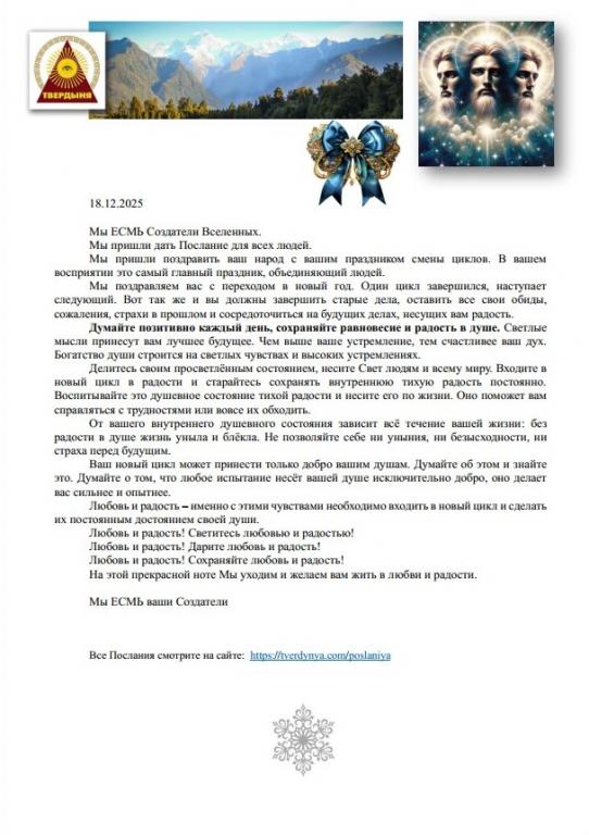 Послание приняла Стелла Риф 18 декабря 2025 года: