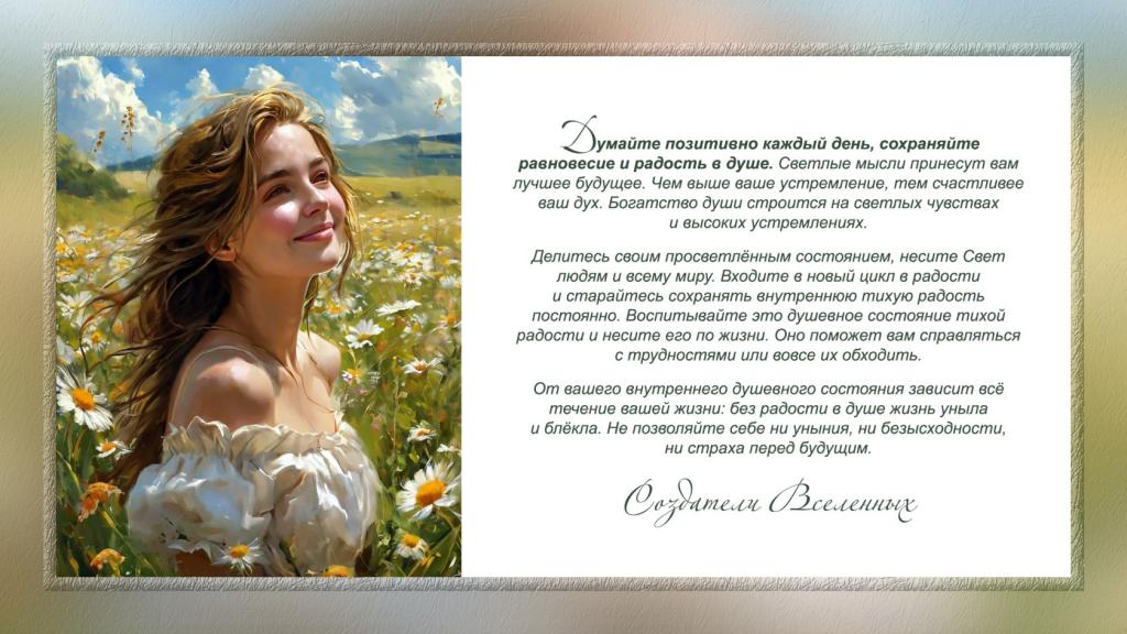 Любовь и радость – именно с этими чувствами необходимо входить в новый цикл и сделать их постоянным достоянием своей души.